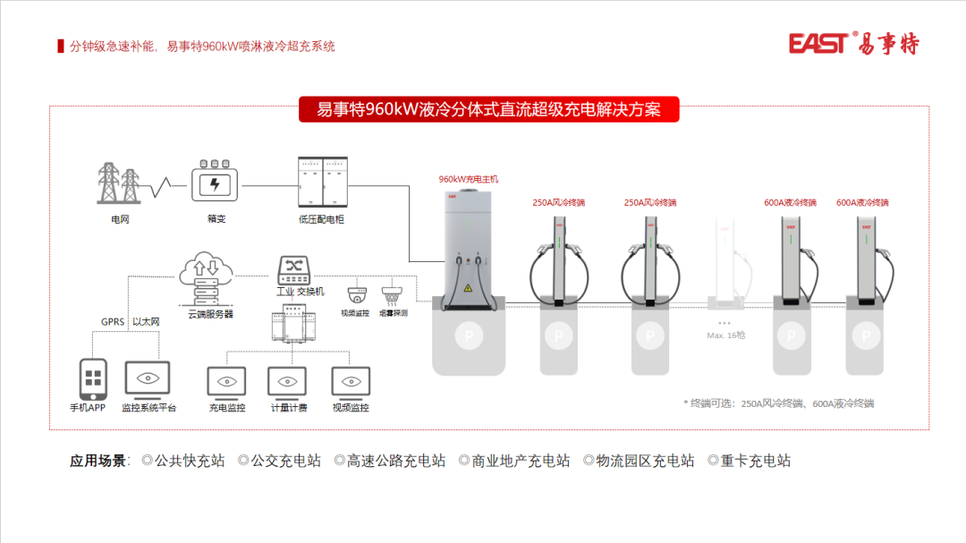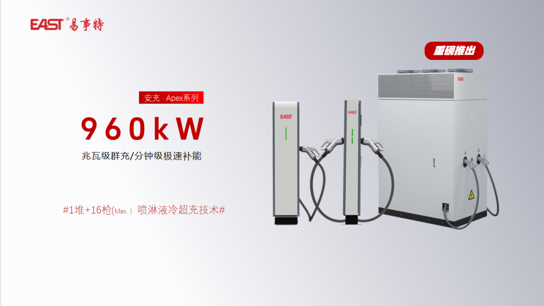 当前国家正加速推进各地级市超充站建设、高速服务区液冷超充全覆盖,易事特这款960kW喷淋式液冷超充桩正以“液冷性能”奠定“功率之巅”,用“风冷价格”加速“秒充时代”的普及。
