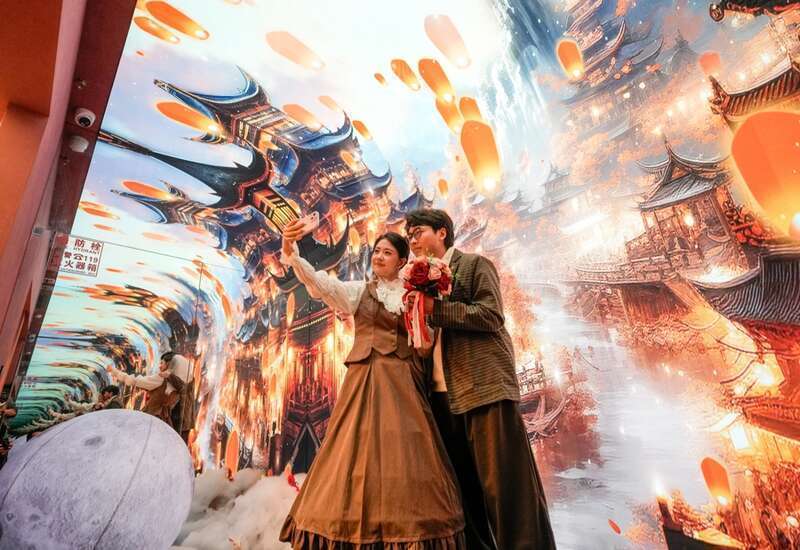 上海多个市级文化地标也以各自方式加入这场“爱的联动”。上海图书馆东馆举办“金石之盟”婚仪文化展演;上海科技馆邀请新人们作为“奇骥奔腾幸福体验官”,寓意婚姻生活从团圆出发、向幸福奔腾;位于上海中心52层的“申爱邮局”则同步推出元宵限定爱情纪念服务,新人们在这里写下寄给未来的信函。